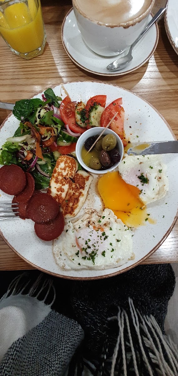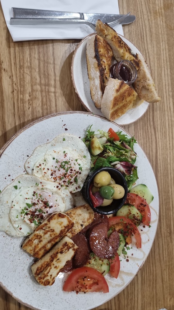 The menu mirrors this mood—with dishes rooted in comforting familiarity but touched with a Mediterranean freshness and thoughtful detail. Imagine a breakfast plate where vibrant olives, perfectly cooked eggs, and slices of hearty sourdough mingle alongside a robust coffee, each element bringing its own warmth and balance. Whether it’s the care evident in a plate of Eggs Benedict or the satisfying freshness of a halloumi panini, the food feels like a natural extension of the space: honest, generous, and thoughtfully crafted.